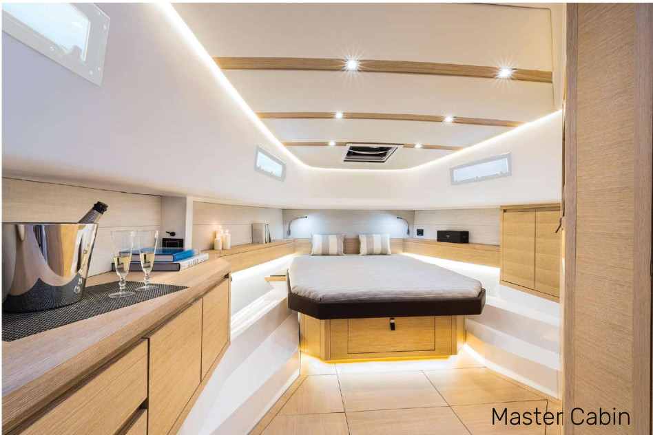 For a 43 Ft yacht she will impress you with her ample sunbed as well as leisure areas her smooth cruising and her smart walk around deck!.